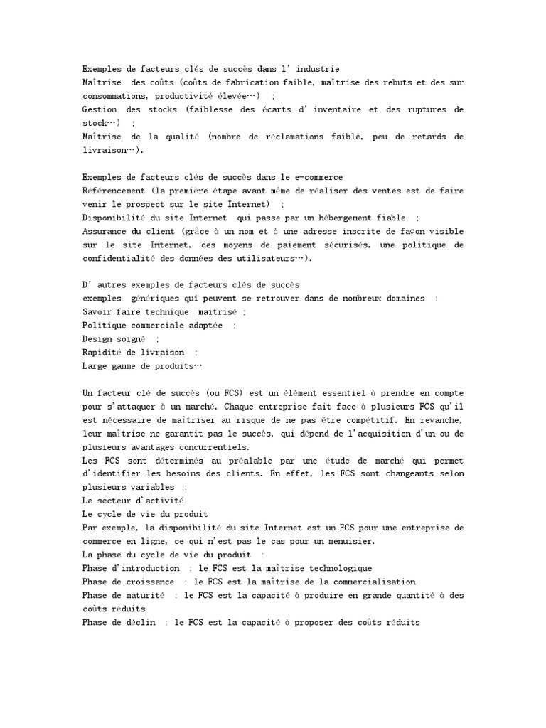 untuk "Les Facteurs Cl?S De Succ?S Exemples"